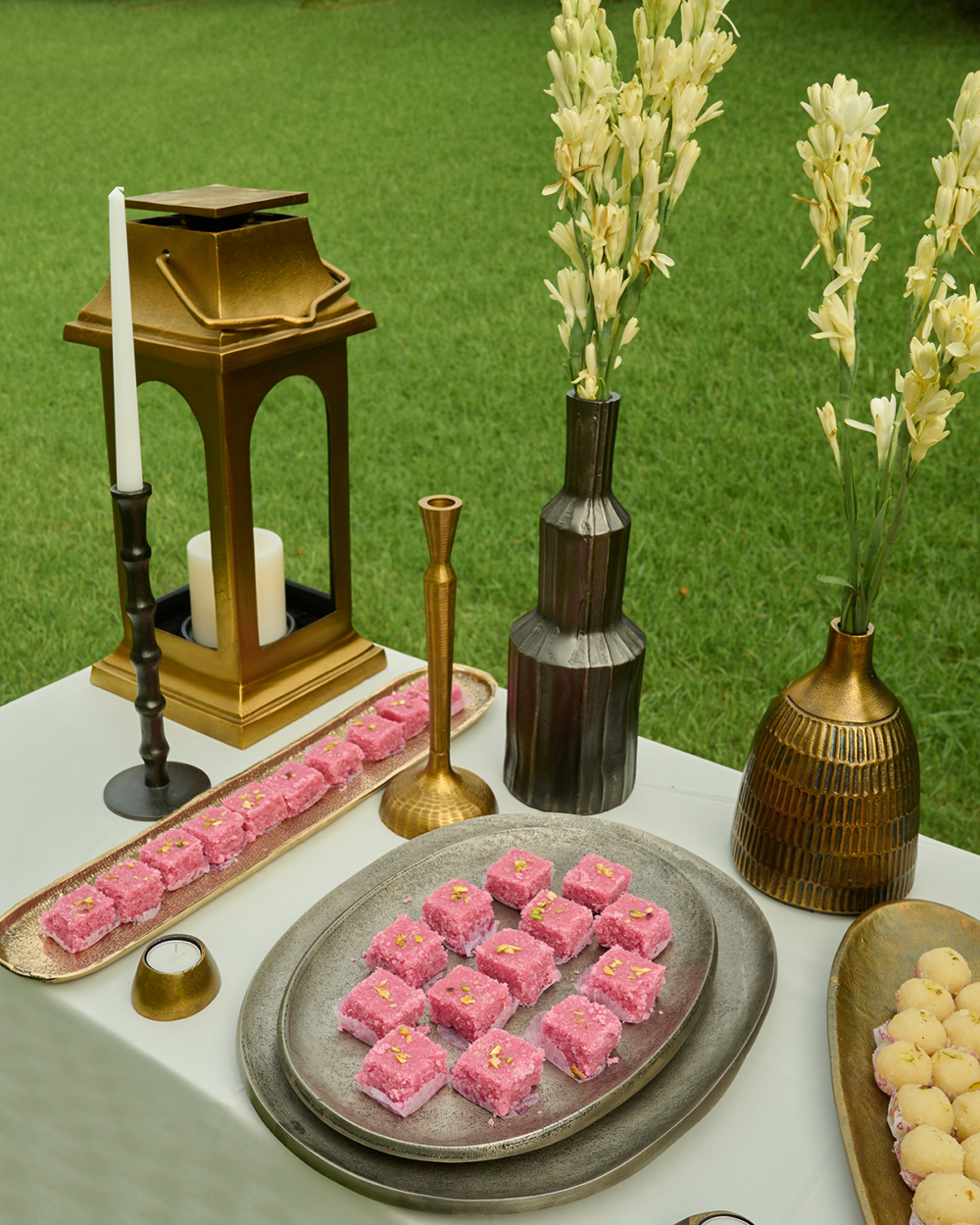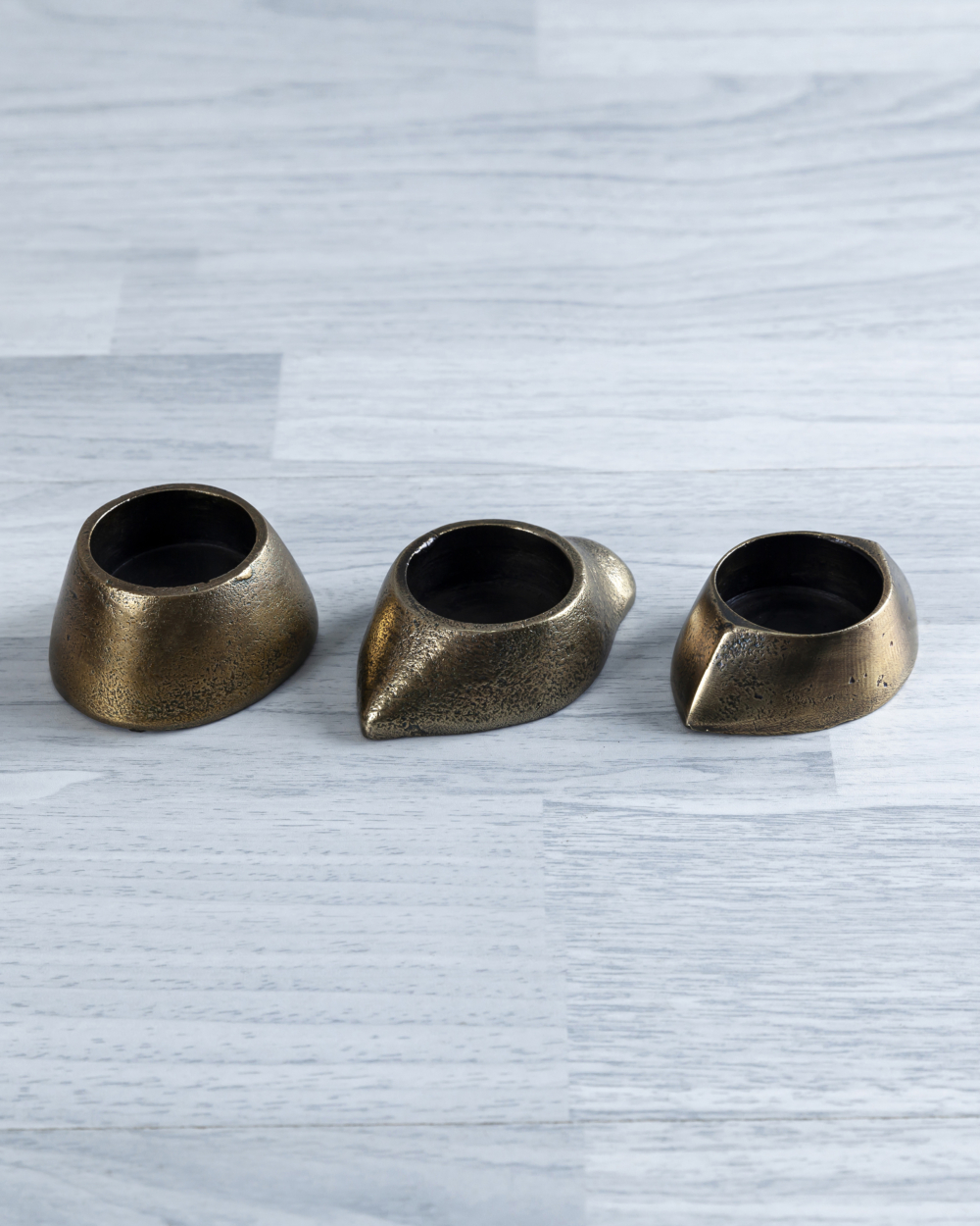 Each form, whether a slender long candle holder, a low tea light vessel, or a commanding pillar, is crafted in aluminium or patinated brass with deliberate attention to weight, balance, and tactile memory. Surfaces catch light differently throughout the day; shadows stretch and shift; patina develops with time.