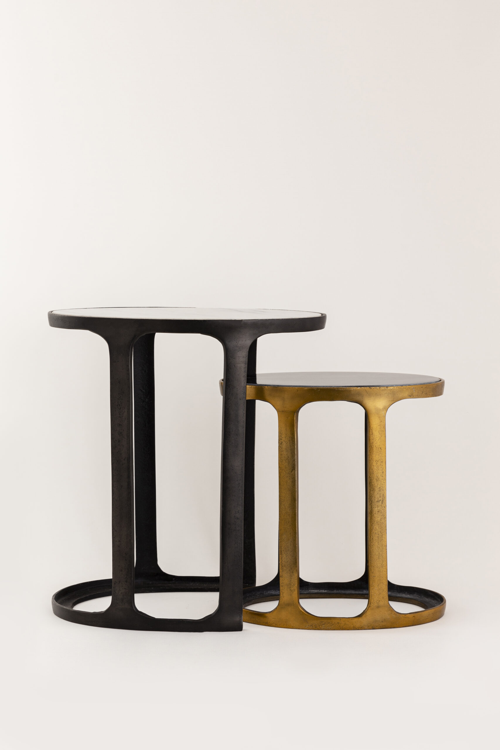 The eclectic duo of Anglo Nesting tables serves up flexible functionality along with fun shapes and textures.