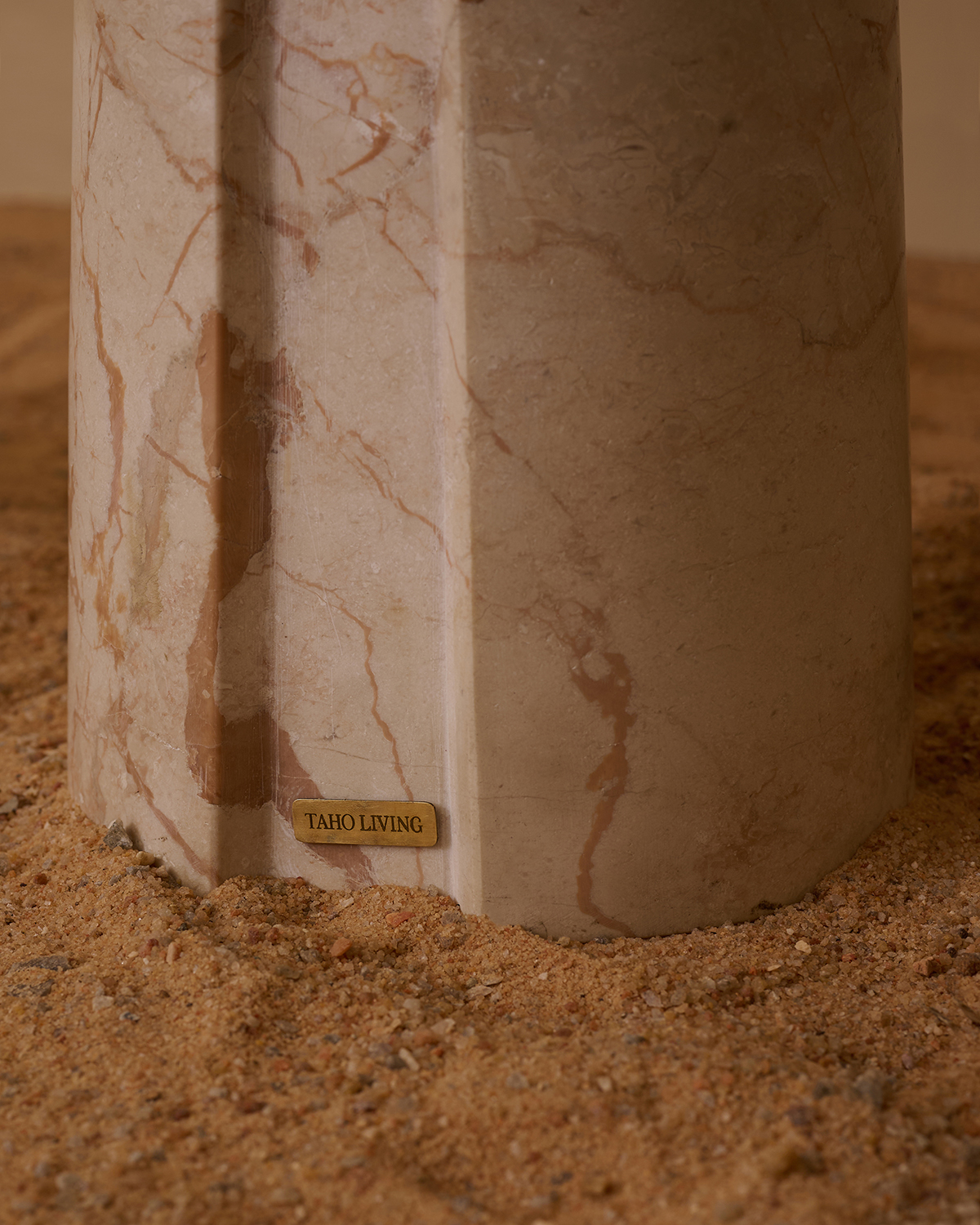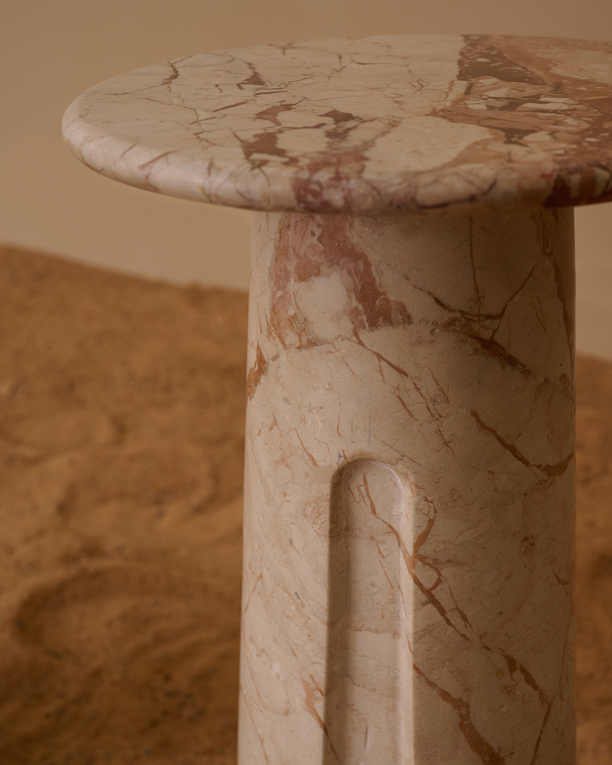 Shani side table is an all stone table that derives it’s inspiration from the Saturn. The lines and curves reflect the majestic rings and the spherical shape of the planet. Making this piece a unique addition into your spaces.